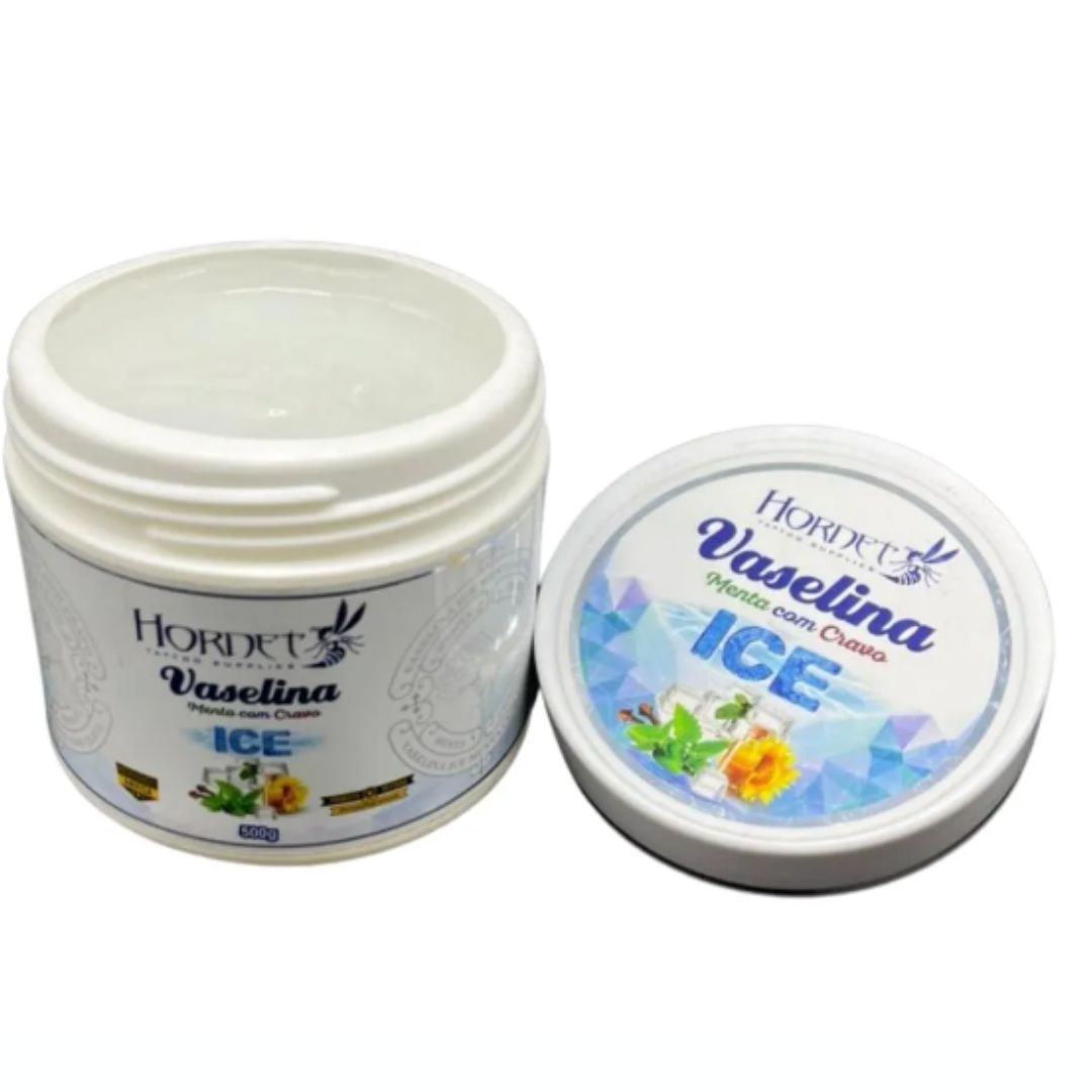 Com Óleos de Mentas e Cravo, a Pasta de Vaselina Ice da Hornet Tattoo Supplies foi desenvolvida para atender especialmente os tatuadores que buscam suavidade. Sua formulação com óleo de cravo possui propriedades agrodisíacas, antibióticas, analgésicas, anti-histamínicas anti-inflamatórias, anti-bacterianas,anti-espasmódicas, antifúgicas e antioxidantes, o óleo de menta age como antisséptico.